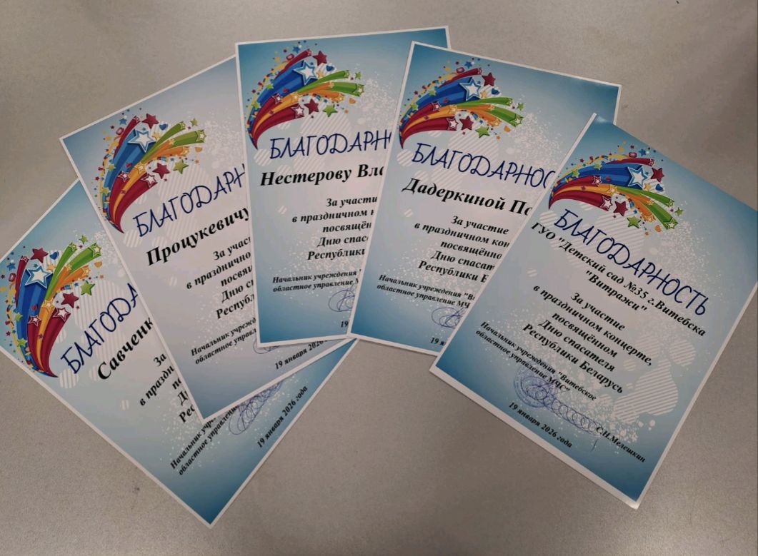 19.01.2026В День спасателя Республики Беларусь наши воспитанники старшей группы поздравили спасателей г.Витебска с профессиональным праздником. Думаем, особо приятно и трепетно было принимать поздравления от ребят их родителям, сидящим в зале, ведь многие из них сами представители семейных династий спасателей!