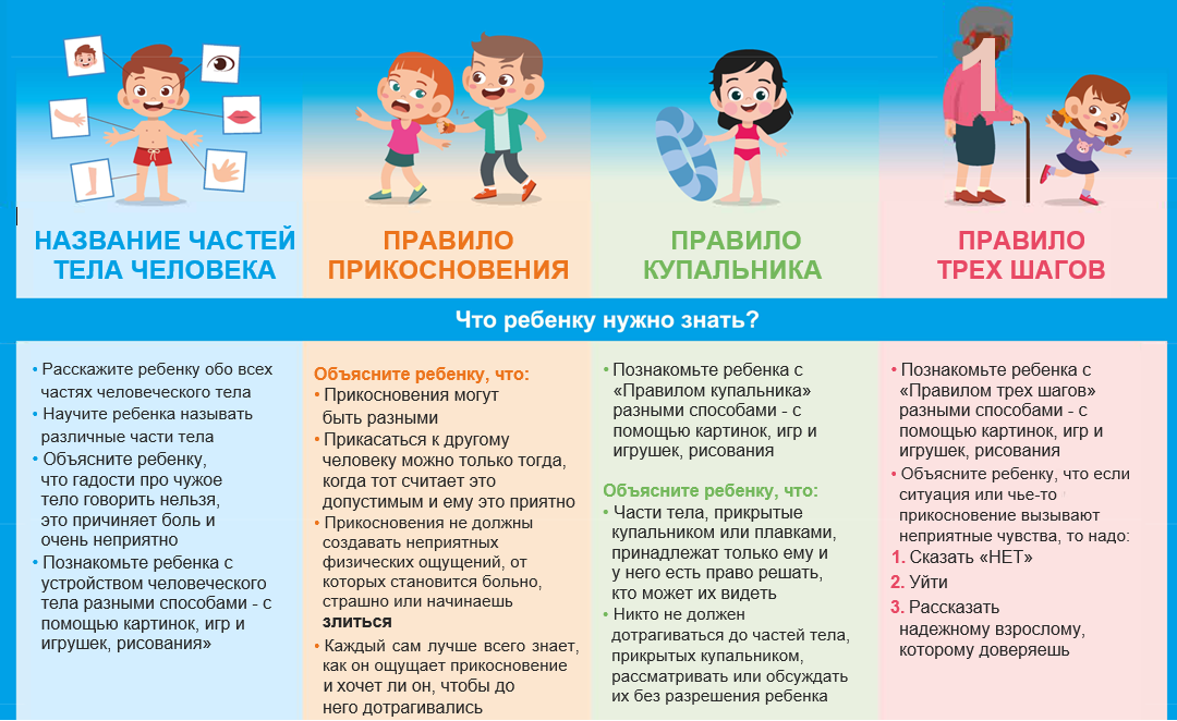«Правило купальника» или «Правило нижнего белья» – это правило, в котором четко расписано, кто, при каких обстоятельствах и как может прикасаться к интимным зонам ребенка/подростка.